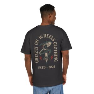 “Snake & Spark Plug” va droit au but: la bougie pour l’allumage, le serpent pour le contrôle et le danger maîtrisé. Le rendu est brut, inspiré des codes garage et des crews moto. Parfait si tu veux un tee qui fonctionne autant sur la route que dans l’atelier.